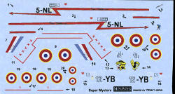 The decal sheet is printed in Japan by Y-craft and appears to be a solid carrier, requiring each individual marking to be carefully cut out and trimmed. The sheet is in register and while the yellow surround seems to nearly disappear against the blue backing of the sheet, only actual use will tell how opaque these colors are. It almost looks like an ALPS printed sheet as the blue in the rudder flash is crosshatched and the lines on the fuselage stripe are a bit on the jagged side, but one has to look close to see. The center blue in the roundels is darker than that on the rudder stripe and they should be the same shade.