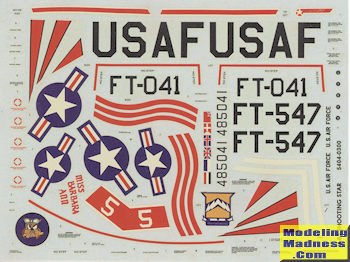 h a small check box beside them. Markings are provided for two planes, neither of which are identified. The box art plane is from the 56th FG with a lot of red trim, most of which will need painted. This is actually an F-80A and not the F-80C that comes in the box. However, the mods needed are minimal; which include trimming the back of the canopy housing and getting early main wheels. The F-80A was probably not capable of carrying bombs and if so would have no wing racks. The other is with the 8th FBG in Korea and is a proper F-80C. The decals are nicely printed and undoubtedly useless due to their age. Fortunately, there are a lot of F-80 decals that have been made over the years so finding some should be pretty easy.