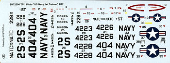 Instructions are well done, as usual with Special Hobby/MPM/Azur, and offer color information using Gunze paints. There are four markings options, all of them in Trainer Yellow with Black anti-glare nose panels. A full color painting and markings guide is on the back of the box with four options. One is the box art plane with NATC in Flight Test or Service Test markings from 1958. Next is the first of the fourteen production aircraft with just base markings from 1957. The third option is one of the service aircraft based at Saufley Field in 1960. The final option is another NATC plane from March 1958. This is the scheme with which one would use the optional nose gear. Decals are superbly printed by Aviprint and should work very well. | CONCLUSIONS |