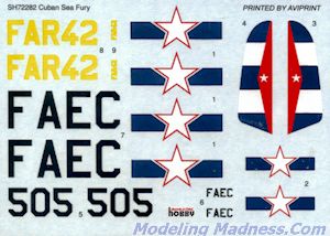 Instructions are nicely drawn with the only build color info supplied being that the cockpit is black and wheel wells silver. Markings are provided for two planes. One is an initial delivery scheme in overall high speed silver with the large rudder markings while the other is a Castro-era scheme of overall 'Cuban olive', which Special Hobby thinks is Gunze H340. This crosses to FS 34097 'Marine Green'. Decals are very nicely printed.