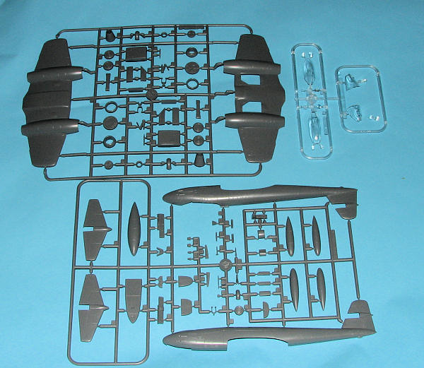 The kit consists of two largish grey sprues and one clear sprue. The clear sprue contains an early and late canopy as well as the new clear nose for the FR.9. It does mean that the nose already on the fuselage will need to be cut off and replaced with the new one.