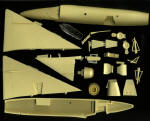 The cockpit is still rather basic with little more than an ejection seat. This seat as well as the landing gear seem to have come from the Hasegawa F-102A kit. At least the molding looks very familiar. My seat has a huge air pocket where the head rest should be so will need to be replaced with an aftermarket seat or one from the spares box. The wings, fin and intakes are keyed to provide positive alignment. A nice touch is that an early exhaust is provided if you wish to model one of the first two planes.