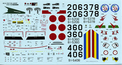 Instructions are very nicely illustrated and provide Gunze paint references as well as FS 595 when appropriate. The instructions are mostly in Japanese so any advice given during the build will be illegible to many. The sheet provides markings for nine different aircraft. Basically speaking, every fighter unit had at least one T-33 to use as a hack and to allow desk pilots to get their hours. These planes could be aluminum lacquer or unpainted metal so one truly needs a photo to get that information down. The high visibility marks were often as not International Orange, especially in the later years. A superb data markings guide is part of the instruction sheet. Decals are printed by Cartograf and include not only the usual markings, but also those for inside the canopy or on the seats.