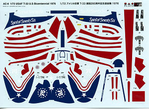 Instructions are very nicely illustrated and provide Gunze paint references as well as FS 595 when appropriate. The instructions are mostly in Japanese so any advice given during the build will be illegible to many. The sheet provides markings for a single aircraft in Bicentennial markings from the 5041st Tactical Operations Squadron based at Elmendorf, Alaska during 1976. It is basically an overall white and the decal sheet provides the red and blue bits. All of them. You can paint some parts red like the fin, horizontal stabs and tank fins if you wish. For the blue, you could paint the large blue area on the nose as separate white decals are provided if you choose this. However you do it, the presentation will be quite striking. As was typical of many aircraft so painted, the number '76' appears in the serial number..