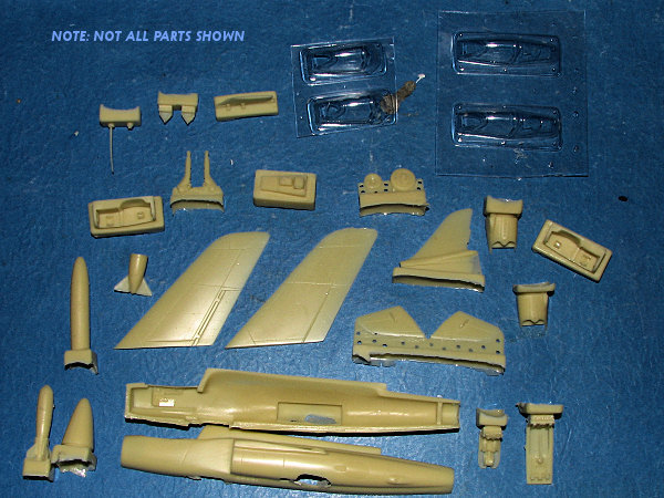 Anyway, the detailing is superb with crisply molded panel lines and there is even some fine interior sidewall detailing. Probably due to the admittedly cramped quarters in there. There is some resin flash over things like cockpit and wheel well openings, but is easily removed. The cockpit is not the usual tub, but a floor with rear bulkhead onto which the finely molded and rather unusual bang seat, control stick and instrument panel are attached. All the wheel wells are separate and to my eyes, have the proper well detailing in there. Since the main fuselage is used for several variants, the nose is a separate and solid piece. Not sure how this will affect adding nose weight or even if any is needed, though there will be some room under the cockpit floor.