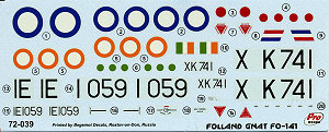 Instructions are well done, consisting of seven well drawn construction diagrams, a separate cockpit painting section and color chart providing Humbrol, Model Master and Revell paint references. Markings are given for two aircraft. One is an RAF aircraft, XK741, used for tests and carrying no unit markings. It is in Dark Sea Grey/Dark Green over what seems to be Aluminum. The other is the IAF's first Gnat in what seems to be overall gloss light blue. I say "seems to be" as there is no definitive icon pointing to the various overall airframe colors; just a greyshade chart off to the side. I'd recommend to ProResin that they definitively indicate the overall airframe colors for those who have trouble figuring out these charts. The decals themselves are just outstanding. Well printed with no apparent registration issues and in the proper colors by Begemot Decals in Russia.
