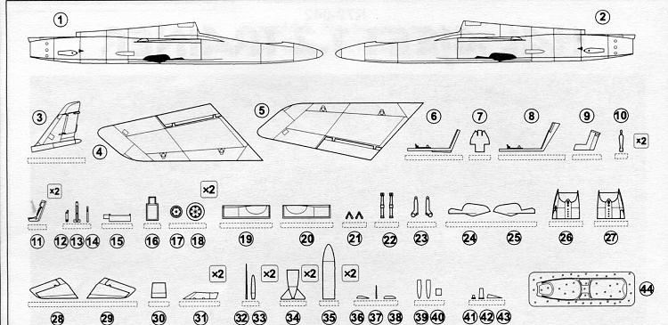 Instructions are well done, consisting of seven well drawn construction diagrams, a separate cockpit painting section and color chart providing Humbrol, Model Master and Revell paint references. Markings are given for what looks to be the second prototype. It is in what looks to be overall aluminum lacquer. The lone set of markings is for 2 squadron where it was undoubtedly used for a hack and for refresher training for desk jockeys. The decals themselves are just outstanding. Well printed with no apparent registration issues and in the proper colors by Begemot Decals in Russia. Instrument panels and the nose anti-glare panel are included on the sheet.