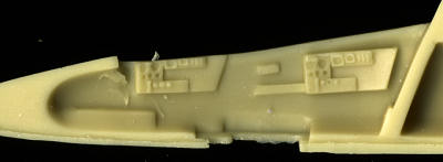 Anyway, the detailing is superb with crisply molded panel lines and there is even some fine interior sidewall detailing. There is some resin flash over things like wheel well openings, but is easily removed. The cockpit is not the usual tub, but a floor with rear bulkhead onto which the finely molded and rather unusual bang seats, control sticks and instrument panels are attached. All the