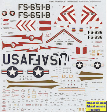 Instructions are well done with generic and FS595 paint colors provided. Two overall unpainted metal planes are provided on the very large decal sheet. One is the box art plane from the 77th FBS in dorea during 1952. The other is from the 9th FBS in Korea during 1953. The big decal sheet is nicely printed and even provides the olive drab anti-glare panel on the top of the fuselage for those who don't want to paint this area. Aftermarket decals are easy to find if you want something else.