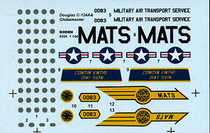 There is a full color painting and markings guide using Model Master paint references. The lone markings option is the box art plane. No unit is provided. The kit has no side windows, with decals being used for this purpose. The decals are fairly well printed with no registration issues and are glossy. Noticed a space in the 'Continental Division' tail band that is not shown on the box art. Also, the aft MATS insignia does not seem to have the full yellow design in the center. As many of you know, Roden decals can be problematical. Not sure what the odds are of aftermarket as this is such a new kit, but they would be welcome.