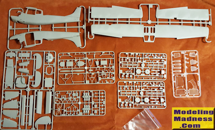 Ailerons and flaps are separate, but are shown in the neutral position. Same for the elevators and rudder. Looking over quite a few period photos of this plane, it was not uncommon to have the elevators slightly drooped. None of the photos showed the flaps down on the ground. For things under the wings, you have four racks which each hold two WP marking rockets. There are shallow divots in the underside of the wing for these. I'd recommend drilling them out a bit more. It was also noted when looking at photos that these planes did not always carry a full complement of rockets. I should mention that the wings are a full span upper piece with two lower halves.