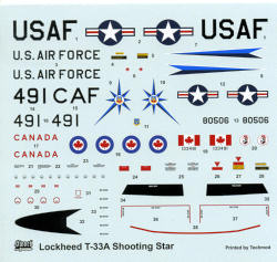 r sections with the lower section being incorporated into the lower wing. It makes for a somewhat difficult seam to fill and truly, you'll need either super glue or thin card to get a clean intake lip. There are no real options as the T-33 was pretty much the same no matter who flew it. The Canadians did have a larger engine that requires an additional exhaust port on the aft fuselage. This is something that some decal sheets offer as a decal or you can drill this out.
