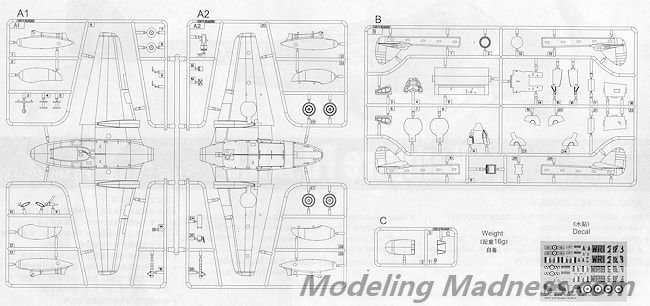 The upper and lower fuselage incorporate the wings, making assembly quite easy. One simply installed the main gear wells, the nose gear well, cockpit and tailpipe before closing the halves. Quite a bit of weight will be needed to prevent tail sitting so it is a good idea to tape the main components together, including the tail section to determine how much will be needed. Tail booms are like on just about every other Vampire kit and are two vertical halves that get attached to stubs at the end of the wing. The instructions would have to assemble the booms and horizontal stabilizer before attaching them to the wing/fuselage assembly.