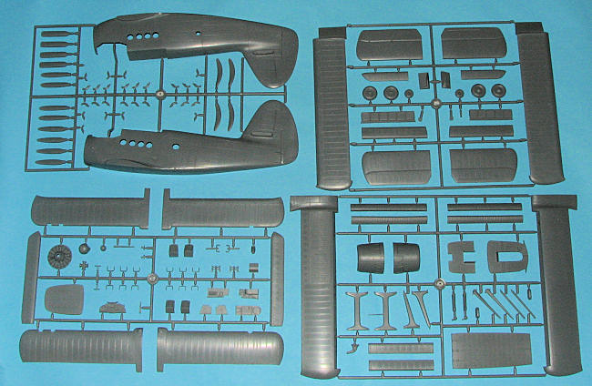 The kit is very nicely molded in the usual grey plastic that one expects from Valom. There are four large grey sprues and one clear sprue that contains the canopy aforementioned. A small photo etch fret is included as are resin parts. In fact, the main difference between the various boxings are the bits that come in resin. As you can see from the sprues image, you get multiples of some parts, such as prop blades, so Valom provides the plastic bits for all boxings in every boxing.