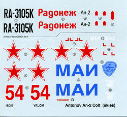 Instructions are the typical Valom book with a variety of paint references. The construction steps are well drawn with a number of additional insert drawings to help through some of the more complex build processes. Markings in this kit are for two aircraft. First is the box art plane in a very fetching blue and yellow scheme from VIHREVO in 2009. The other is a standard Russian military plane from the Moscow Aviation Institue from 2010 in a standard OD over light blue. The decals are very nicely done and look to be nice and thin.