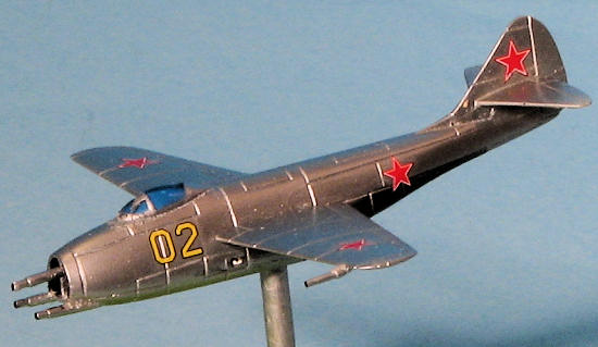 The I-300 was an all-metal design, with simple straight wings with slotted flaps and delta shaped tail surfaces. It was also one of the first Soviet designed fighters featuring tricycle landing gear. Its powerplant comprised two RD-20 turbojets, which were Soviet-manufactured versions of the captured German BMW 003. In some instances, due to shortages and failed delivery of the RD-20 engines, actual BMW 003 engines were used in some production aircraft.