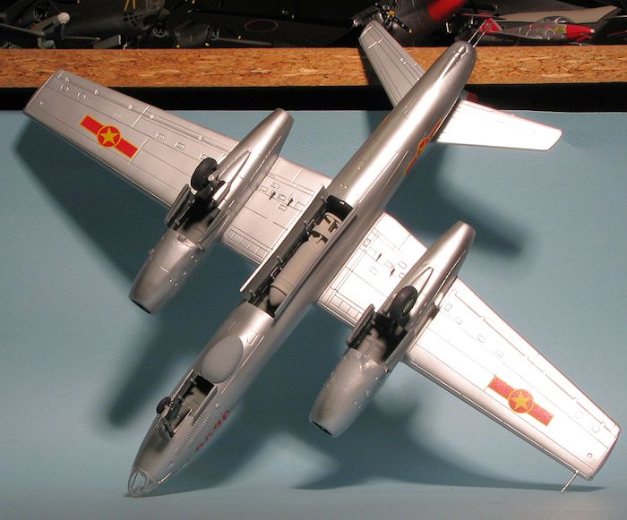 I am not sure how many of you are seriously considering building this kit, but it really isn't all that bad. One just has to keep a few things in mind. One is to be careful in regards to the tail section. Check photos of the version you want to build and if it is a Harbin-built plane, don't cut off the kit tail. Second is to prepare to use those modeling skills for filler and adjusting parts to fit. One would hope that Hornby would add the IL-28 to its list of kits from the old catalogue to re-do, but I wouldn't hold my breath. While probably not an award winner, the Trumpeter kit can be built and does make into a nice model for your shelves.