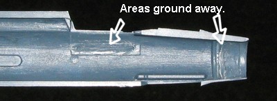 Thankfully, I have a battery powered motor tool that is perfect for plastic as it doesn't run too fast, doesn't have a ton of torque, and is rather light. Using this, I ground away about half of the cockpit mounting are until the cockpit fit about right. Moving to the front, I ground off some of the plastic from in front of the nose cone mounts so that the cone would be able to fit in place and not be too far back. I also sanded a touch off the back of the cone so it wouldn't jut out too far.
