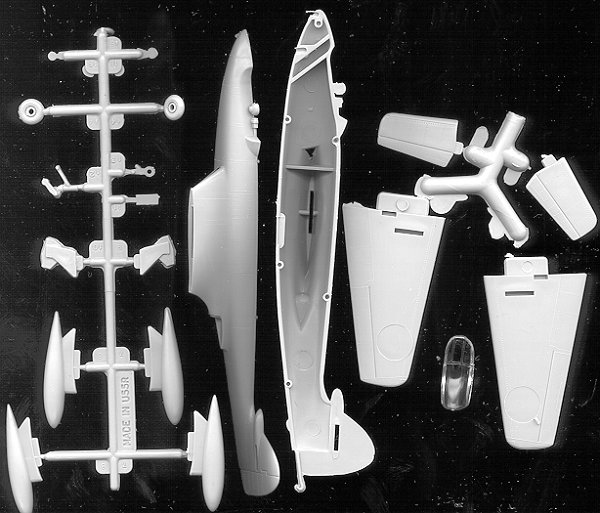 In terms of detail, the Airfix kit has it all over the Frog version. For one thing, Airfix provides the builder with gear wells, something that Frog found spurious. Same goes for a cockpit. Frog molded the pilot head so that one would have something to see through the rather clear canopy. The kit also is nice enough to supply the location of the roundels on the wings and fuselage. I suspect that it is a way to 'hide' the ejectors on the wings as those roundel marks are rather deep!