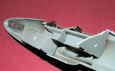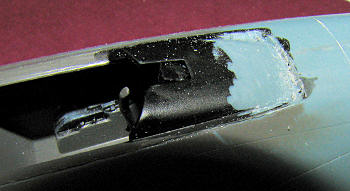 This was followed by the rear seater's blast shield. When the canopy was glued in place, there was a pretty good size step behind it. This and the seams on the windscreen were filled and sanded smooth. The rear one took several applications.