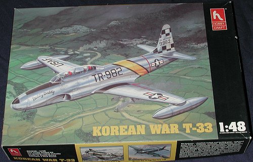 Thanks to Hobbycraft, we have a second option to the old Testors/Hawk kit when it comes to the T-33. Though the kit has been around for nearly a decade, it is still a good one and comes in several boxings. This particular one is for a Korean War version. However, here is where things get a little confusing, at least for this reviewer. The kit has the type of tip tanks that were more common for the F-94A in that they hang from the underside of the wing tips instead of fitting on the ends. For that, a new sprue with the 265 gallon tanks and wing tips is provided. Also provided is a sprue with bombs and rockets. Now I've not a lot of references on the T-33, but it seems to me that the weapons are more for the AT-33 than a regular T-33. The AT-33 was developed for South and Central American countries that needed a trainer with some limited attack capabilities and wasn't built until after the end of the Korean War. The AT-33 had the larger Fletcher tip tanks that are not provided with this kit. Now I was able to find two photos of T-33s with the 265 gallon tanks; one was a very early Canadian T-33 and the other an ATC TF-80C. None of my references show Korean War era T-33s so if anyone can help in this regard, I'd appreciate it.