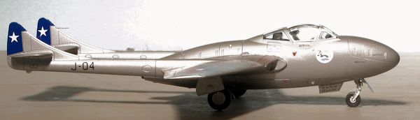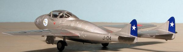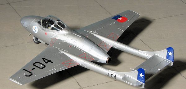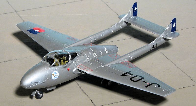 T.11: two-seat training version for the RAF. Powered by a Goblin 35 turbojet engine; 731 were built by DH and Fairey Aviation. As an added note, it seems like Australia and Switzerland were two countries who built most of the license versions. They were also built in Italy and France