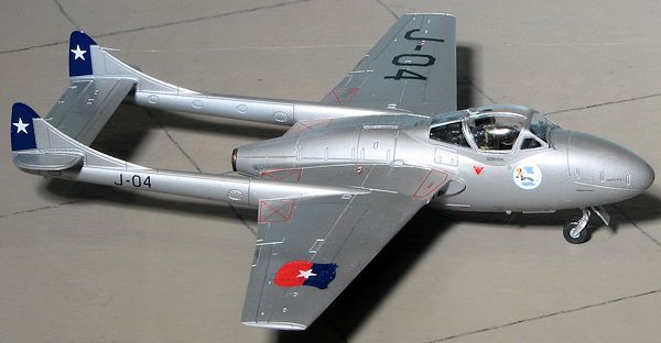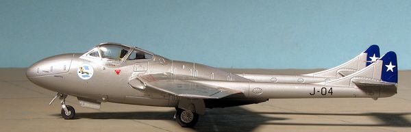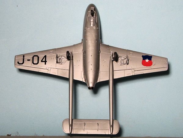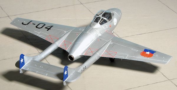 It was time to head to the paint shop and the daunting choice of having to pick from several excellent markings schemes from Xtradecal sheet X72174. I was quite torn between several schemes, but since the ones I wanted to do were in overall high speed silver, I went ahead with painting. For this color, I used the RAL 9001 that I had used on the earlier Trumpeter 1/48 Vampire as that seemed to work out well for that aircraft.