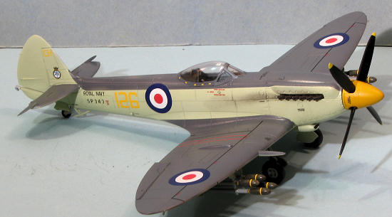 The large and colorful decal sheet provides markings for three planes. Two are in Extra Dark Sea Grey over Beige Green (which has to be mixed). These are from 800 NAS in 1947 (box art) and the other with a higher fuselage demarcation line, is from 1832 NAS RNVR in 1950. This latter plane has the later roundels. In Extra Dark Sea Grey/Dark Slate Grey over Beige Green, with yellow bits on the wings and elevators, is an aircraft from the Air Warfare School, also in 1947. The Extra Dark Sea Grey soon faded to just Dark Sea Grey after a few months of exposure. The decal sheet is superbly printed by Cartograf so is as good as any aftermarket sheet. It also includes full data markings and a wing walk decal. Instructions are well done with easy to understand construction drawings, but still with only Humbrol paint numbers for most of the build, some colors need to be mixed.