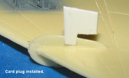 Next, I attached the tail planes. The single attachment hole was enlarged and drilled through to help gluing. The tail planes were then glued in place. I also glued the tail bumper at this time.