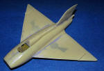 I also glued in the exhaust at this time after painting it Burnt Iron using Testors Metallizer. There are four probes, two under the nose and two on the wing leading edge. The wing jobs are thicker than any part of the leading edge of the wing and since I broke one, I only installed the one near the tip. I had to cut a notch in the wing leading edge for it as drilling was out of the question. For the probes under the nose, I could only use one as the other had broken as well. I drilled a hole for it and glued it in place. These items were touched up with gloss black and a silver marker pen.