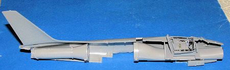 The cockpit is nicely detailed with raised instrument detail. A decal is provided for the main instrument panel and my experience with this fitting over the detail is quite positive. Side consoles will have to be painted as no decal is provided for them. Both intake and exhaust trunking is provided, along with a long seam on both sides that will be difficult to fill. Fortunately, Hasegawa also gives us intake and exhaust covers. I should also note that the speed brakes seem to have the proper droop, judging from the photos of the built kit on the instruction sheet. One thing you should note is that the fuel dump pipe should protrude down at about 45 degrees, not horizontal as shown on the kit build-up.