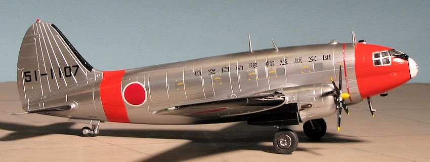 The C-46D of which this kit represents, differed from most models by having an additional jump door on the starboard side of the fuselage. It was this version that was used widely by the JASDF, who kept them in service for many many years, some serving well into the 1970s.