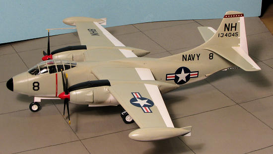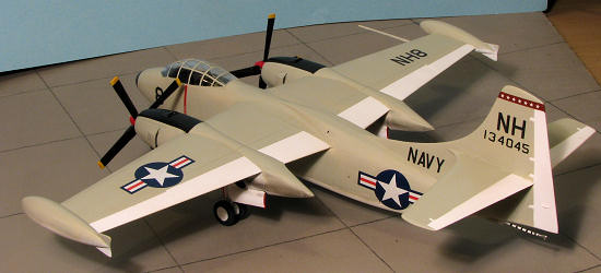I then gave the upper surface a coat of semi-matte clear to seal in the decals. The masking was removed from the canopy, the props pushed onto the engines, and the model was done. I then hurried to take photos of it for the article before I broke something.