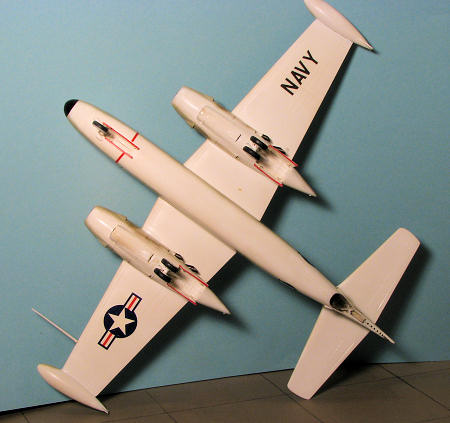 The AJ-2 first flew on19 February 1953 and had uprated engines and a taller vertical stabilizer and non-dihedral tailplane.