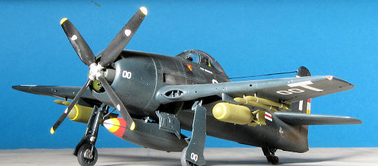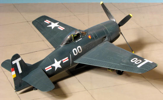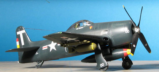 Markings are for two planes. One is the box art aircraft with VF-3 from 1946 in overall sea blue. The other is 'Beetle Bomb', the solo display plane of the Blue Angels in 1949. Though the painting guide shows it with full tanks and weapons, this plane was not normally armed so break out the filler. Decals look to be very well done.