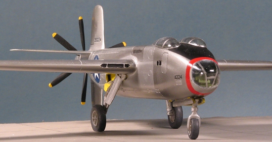 Setting those aside, I then went to figure what to do about the forward gear doors. Pics showed that obviously I wasn't going to get these to fit properly so I thinned the very forward section of the 'aft' door so that I could get it to fit somewhat close. The forward section had one door with a broken off tip so that tip was glued to the underside of the wing while the rest of the door was attached to the strut. Not real pretty, but few will realize it isn't right. At this time, I put on the decals. They are a bit thicker than you might like, but with Solvaset, they snuggle down nicely and really are not that bad. I then glued the two props in place, making sure that the inner one was not reversed! I removed the masking, was thrilled that I didn't totally hose that portion of things and the kit was now a model!