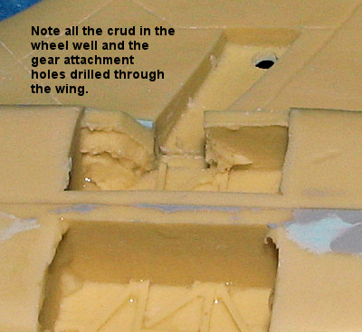 wing, the left fuselage half has a section that is very thin and the nose gear