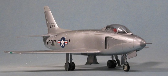 Not really much to do in this step. I glued on the wing pitot tubes and the outer landing gear doors. I also used some stainless steel tubing for the nose probe. If you are doing a 'what if' model, the nose would be free of these instrumentation probes, but prototypes usually have a bunch of these things. The last things were the main gear outer doors which were just butt glued in place. I then went over the control demarcation lines and various vents with a drafting pen. These are really handy to have and though a bit expensive, are cheaper than most kits and will last through a lot of models. The canopy masking was removed, a small curse escaped my lips when I noticed a bit of fogging, I scraped much of that off with a small piece of plastic stretched sprue and then it was done. Oh yeah, for those of you who want to send me e-mails, save the electronic stamp. I have already noticed that the nose gear has the strut on the wrong side, but that was the way the thing was molded as the gear retraction strut would have been out the back of the nose gear well. I could also have trimmed the main gear outer doors a bit more and may well do that at a later date. I noticed from images that the nose gear forward door and the main gear inner doors could be closed as well as open. I don't know why I notice these things after the model is done and all the photos taken. It has to be a gift.......