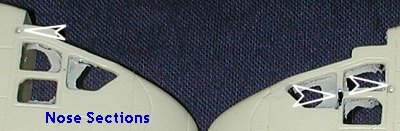 Fuselage is in two major sections; a forward and aft piece. The forward section is split vertically, and the aft horizontally. It works. The interior will need to be installed after the forward fuselage halves are joined. To eliminate the floor seam, some may wish to put in a very thin piece of plastic sheet. Transparencies are vacuformed. The window framing is almost invisible and very difficult to see so masking will not be an easy task. For the side windows it seems as if one has several choices. One is to remove the resin framework and put in the full vac section after masking off the frames. Another is to cut out the individual windows and fit them in place. A third is to take a new piece of clear and cut new side windows. I'll mention again that it would be very nice to have two complete sets of transparencies, especially when they are as indistinct as these.