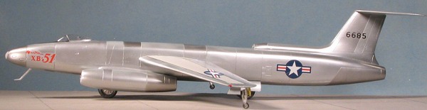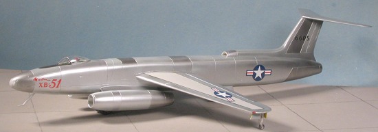 The outbreak of war in Korea during 1950 saw a need to develop a night intruder and so the XB-51 was pitted against the British Canberra bomber. Here, speed wasn't paramount and the three-engine XB-51 was at a disadvantage to the twin-turbojet Canberra. After a fly-off in 1951, the Canberra was chosen, much to the dismay of Martin, even though Martin eventually produced the Canberra for the USAF. With the loss of the fly-off, the XB-51 project was cancelled in 1952, though the aircraft itself continued to fly test missions at Edwards AFB and starred as the 'Gilbert XF-120' in a William Holden movie on test pilots called 'Beyond the Unknown', probably one of the top ten aviation movies ever made (lots of lovely prototypes and X craft!).