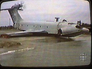 The prototype Ekranoplan M-1 was first discovered by US spy satellites enveloped in a cloud of spray while undergoing trials on the Caspian Sea in the early 1970s. It was a much smaller (100 meters long) technology demonstrator. It was envisioned that 120 of them would be built, but in effect only four were built, one of which was a static test airframe. Of the other three, one was lost in an accident in Sept 1992 and the other two were used operationally until October 1993. What killed the project was the dissolution of the Soviet Union and the inability of any of the new states to handle a large budget item like the Ekranoplan. I did manage to locate some images of it thanks to a reader who sent in a few screen captures. I have included them in this section so you can see the thing in action. As you notice, small it isn't!!!