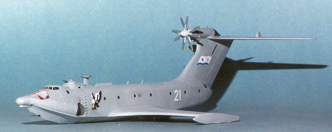 The Soviets were looking for a way to move a lot of men and materiel quickly overwater and other semi-smooth terrain. What they came up with was a very large ground effects vehicle the 'flew' a few feet above the surface. The benefit of this type of transportation is that it is fast (around 500kph), 'flies 'under most enemy radar, can carry a lot of cargo/troops, is much more fuel-efficient than an aircraft, and can also travel some distance over land if there are no real obstacles. I noticed on the completed kit that there seems to be some sort of beaching wheels under it which would allow it to move rather easily on concrete surfaces.
