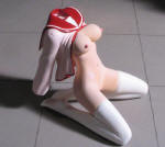 section, that part was masked off. I then mixed some brown and red acrylic to get the shade I wanted and sprayed that. The bikini bottom, and cuffs were also painted at this time. Masking the sail, the white stripe area was sprayed. Then I hand painted the outer reddish brown section. This took considerable time, as you can imagine, but the results were worth it. The big ribbon was painted with a darker pink from the jacket and the white stripe hand painted when all was dry. I also hand painted the stripe on the cuffs.