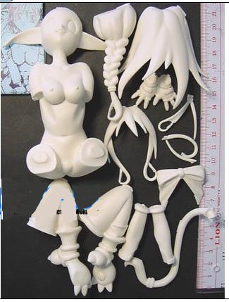 Typical of Hong Kong or Japanese produced resin figure kits, this one was molded in a fine, white resin. It was totally devoid of any glitches such as air bubbles, chipped sections, large resin sprue block or broken pieces. Test fitting showed that there would be some work needed to fill in gaps, but nothing out of the ordinary for figures such as this. In fact, most of the join lines were made where there was a piece of clothing or jewelry present to hide the join.