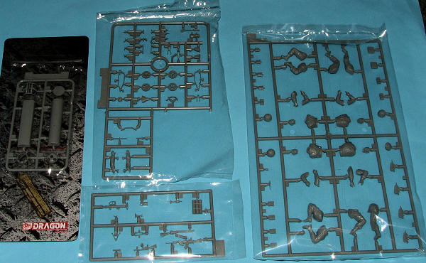 Dragon has provided us with a nice new Premium edition kit that has some interesting goodies. First of all, the figures are the same as in set 6023 and are four British paratroopers in various poses and kit. One of the soldiers is holding a PIAT while one has a Bren machine gun, another a rifle and the fourth a Sten gun.