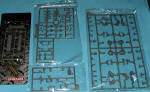 Well, that is how it fits in with this particular figure set. There are a whole new set of sprues for the container and for the bike itself. The bike sprue even includes some extra arms so that you can put a seated figure on it, though the figure set doesn't seem to include any that would be useful in this regard. There is also a photo etch fret that includes straps for the inside of the container as well as a chain/sprocket for the bike. Instructions are well drawn and use both Model Master and Gunze paint references.