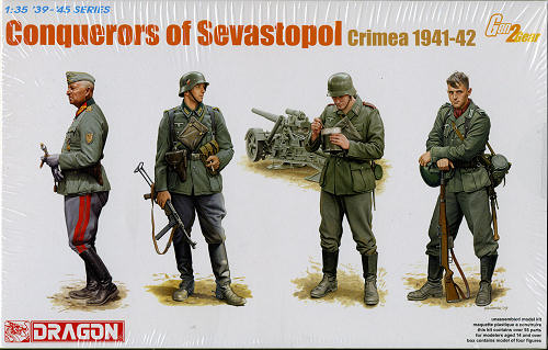 Dragon’s latest 1/35 scale figure set features four soldiers who fought in this grueling battle. They may have conquered Sevastopol, but by the looks of several of these figures, the battle has certainly taken its toll on them! The plastic figures are sharply molded and they assemble to create lifelike poses. The figures range from a general with a paunch, down to a ravenous soldier of much lesser rank who is wolfing down a meal. Each figure is accompanied by Gen2 personal gear and weapons. Of note, the cigar-smoking general has a periscope mounted on a tripod. While these figures in summer uniforms relate directly to the Siege of Sevastopol, they could easily be utilized in a whole plethora of other ways.