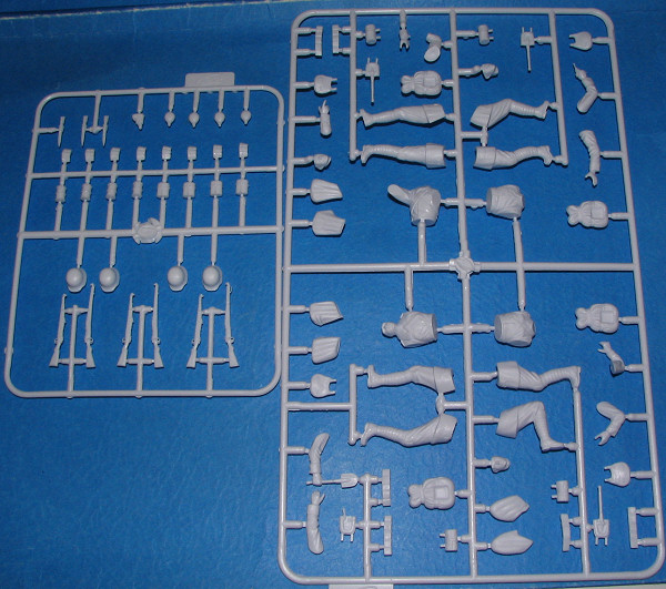 One rarely sees WWI figures of any sort so it is quite a treat to find this set from ICM. There are four figures in the set and posed pretty much as you see on the box art. Each figure is made up from a number of parts as head, torso, arms and legs are separate. This is also true of all the various equipment carried by each figure. In fact, there is more 'stuff' than can be used so you'll have a number of bits and pieces left over.
