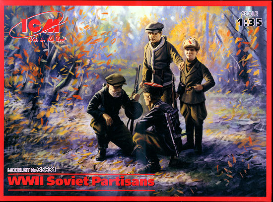 This particular figure set from ICM and contains four figures in various poses. Two of them are kneeling while the others are standing. One is an older man while another appears to be a youth of some sort. Most are carrying weapons of different types. They appear to be plotting for their next move.