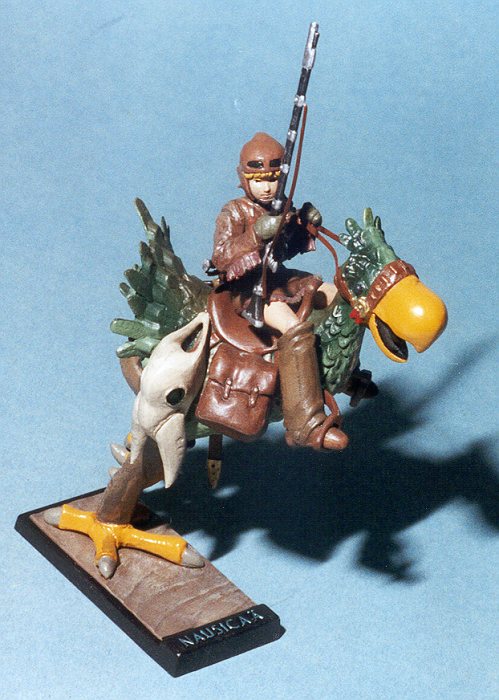 Rather than paint Nausicaä and the kai in the blues shown on the box art, I chose to keep all the colors in the green and brown area. This included Nausicaä's outfit as well. The only deviation to this was the use of some metallics and the orange-yellow of the kai's beak and feet.